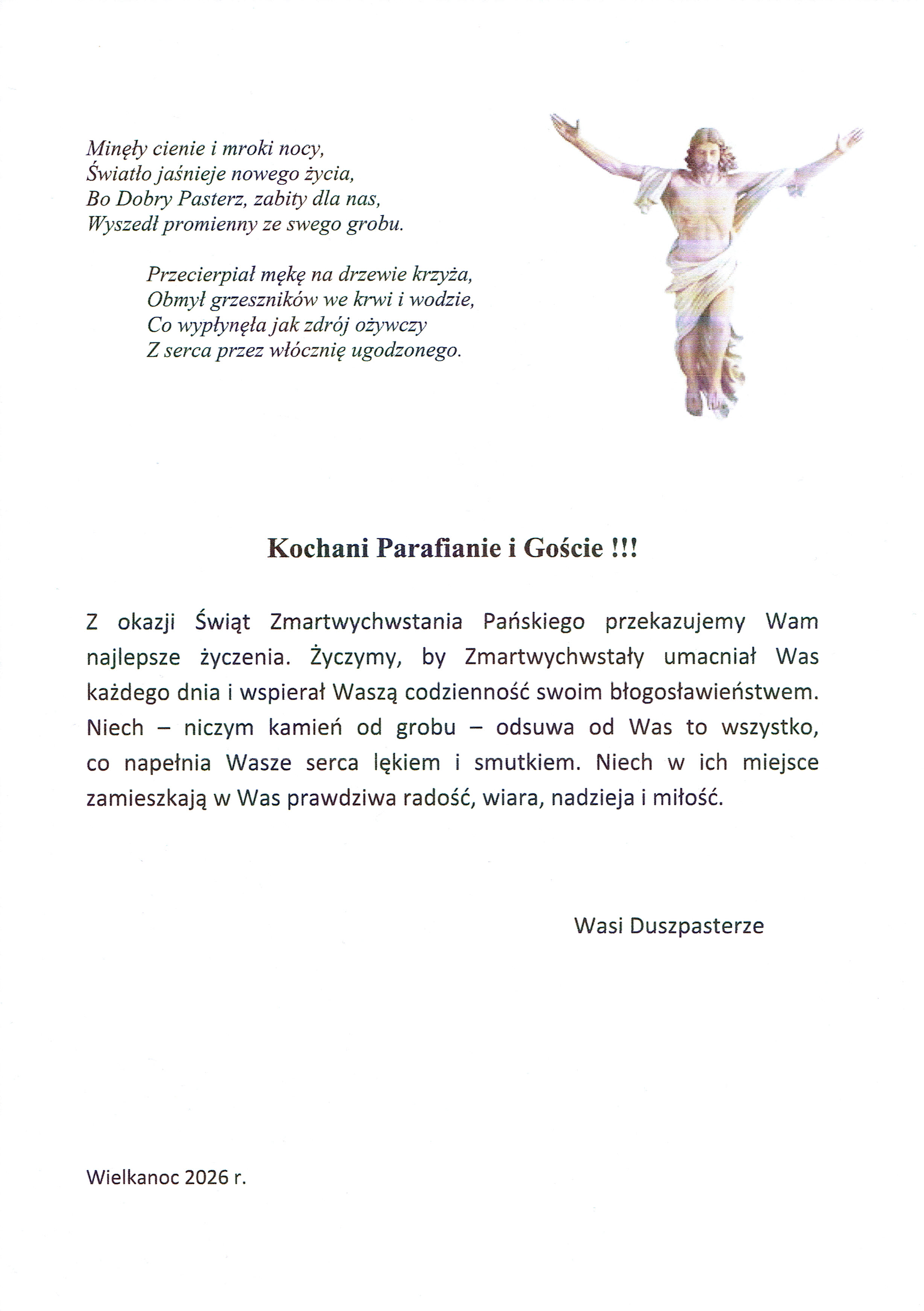 - osobom, które złożyły ofiary na kwiaty do Bożego Grobu i wszystkim Dobrodziejom parafii,